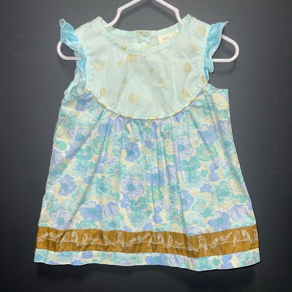 Matilda Jane Girls Dress 18-24m Birds Ruffles Polka Dot Floral Blue Green