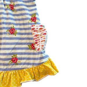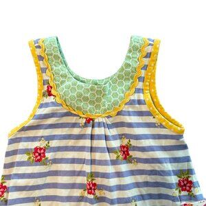 Matilda Jane Girls Ruffle Sleeveless Top Blue Striped Floral Yellow Size 4