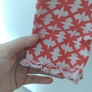 Matilda Jane girls burnt orange and cream geometric print long sleeve top with ruffle trim around the crew neck neckline and at the wrist cuffs