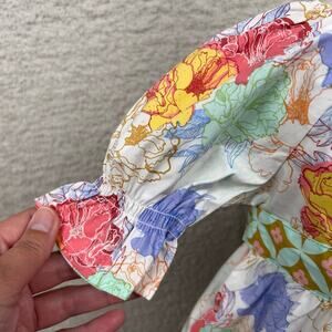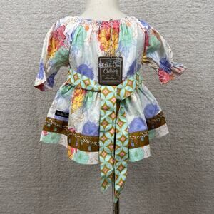 Matilda Jane Girls Top Size 2 White Multi Floral Chasing Firefly's Peplum Tunic