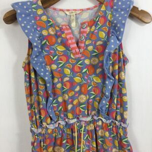 Matilda Jane Girls Tutti Fruity Colorful Fruit Print Ruffled Romper Multi 14