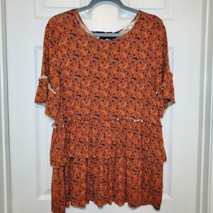 Matilda Jane Give Thanks Tiered Ruffle Top Orange Sz M Bow