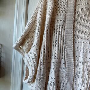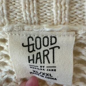 Size XL/XXL Good Hart by Matilda Jane, Mayfield Sweater. Ivory knit kimono sweater. Love the fringe! Super soft and cozy, perfect for this Fall and Winter! Cotton. Acrylic and polyester blend. No stains or flaws, very very good used condition.