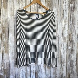 Elevate your wardrobe with this chic striped long sleeve top. Perfect for any occasion, this black and white top offers both style and comfort. Chic and comfortable striped long sleeve top. Perfect for casual outings.