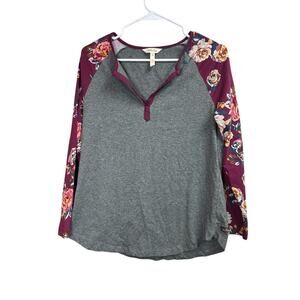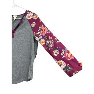 Matilda Jane Gray Times Table Raglan Floral Sleeves V-Neck Long Sleeve Medium