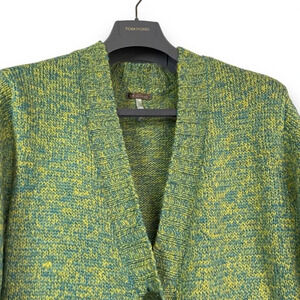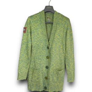 Matilda Jane Green Multi Wool Cardigan Long Sweater V-Neck Button Up Pockets M