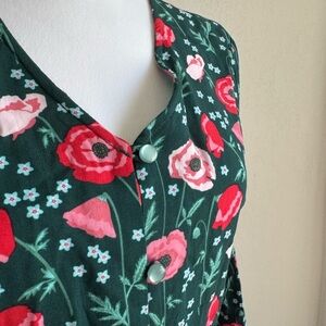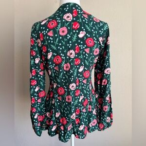 Matilda Jane Green Red Floral Button Down Long Sleeve Blouse Women’s XS Coquette