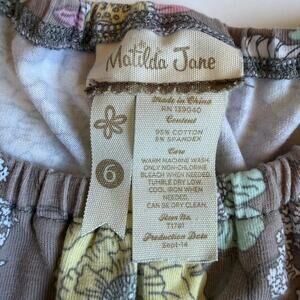 Size 6, Matilda Jane, short sleeve grey floral print peasant top. From the Hello Lovely collection. Ric Rac trim on sleeves and bottom hem. Elasticized waistband and neckline. No stains or flaws, very good used condition.