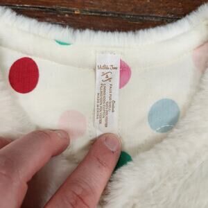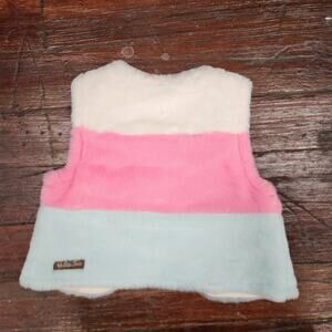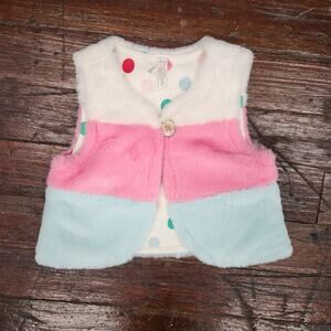White, pink, and baby blue colorblocked faux fur vest with polka dot quilted lining. Cropped cut for perfect layering. Excellent condition. new without tags!