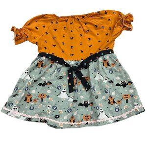 Matilda Jane Halloween Cat & Ghost Shirt Size 5 Orange & Green Cotton Blend