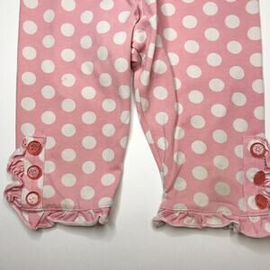 These leggings are a candy pink color with big white polka dots. They are a cropped length with ruffles and button details at the bottom. The leggings are in GUC for wear and from the Hello Lovely Spring 2015 Collection.