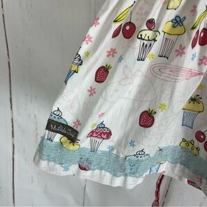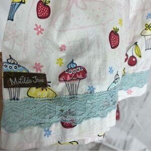 Matilda Jane Take the Cake top from the Hello Lovely collection. Girls size 4. Multicolored with whimsical cupcake pattern. Ties in back. Single button back closure.