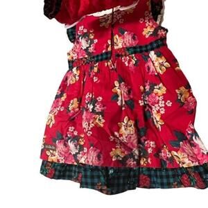 Matilda Jane Holiday Sugar Plum Dress Bloomers Set is a vibrant red ensemble for infant girls aged 12-18 months. The set features a festive plaid design perfect for holidays.