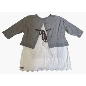Matilda Jane • In The Clouds • Top Size: S This top is so dreamy. We love the eyelet details and the ribbon bow on the back! 💗 This top is comfortable with a sweatshirt - like top and cute with the sweet feminine hem. • Eyelet on the back • Ribbon bow • Knit-95% cotton, 5% spandex Woven & Embroidery- 100% cotton