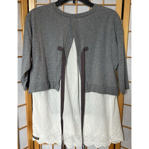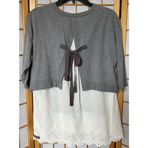 Matilda Jane "In the Clouds" Gray & White Layered Top Tie Back Eyelet XS