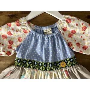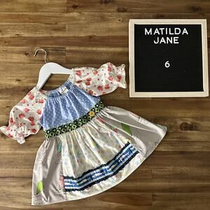 Matilda Jane My Favorite Things Peasant Top in Size 6. From the It's A Wonderful Parade - Spring 2014 Collection. Good used condition for some light normal wear/small black mark on the back of right sleeve (see pictures). Super cute for your little girl or someone special!