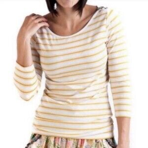 Matilda Jane "Its a Wonderful Parade Sunny Top" Womens Size XL. Golden Yellow/White Striped. Contrasting Shoulder Buttons. 3/4 Sleeve Boatneck. Lightweight For All Seasons. Good Condition. See Photos For Measurements To Ensure Proper Fit.