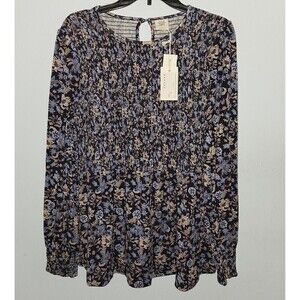 Matilda Jane L Good Hart GH Asherton Floral Print Smocked Top Blue NWT
