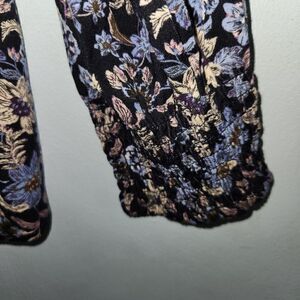 Add some whimsy to your wardrobe with this Matilda Jane blouse. The floral print in shades of blue and multicolor is sure to put a smile on your face. The long sleeves with classic/fitted sleeves and crew neck make it perfect for casual occasions. This top is made of a comfortable blend of polyester, spandex, and modal, and fits true to size. The smocked detailing at the waist adds some flattering shape to the blouse. Perfect for any woman who loves a touch of femininity in her wardrobe. Measures approximately 18 inches armpit to armpit and 28 inches long. Thanks for looking.