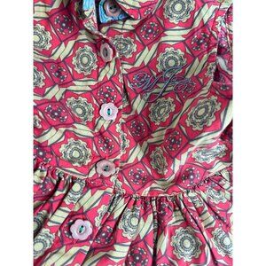 Vintage Serendipity line. Listing as PLAY because of the popped stitches on the bodice, shown in photo. Accented with beautiful green velvet trim. Embroidered with MJC. Please look at photos