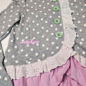 Matilda Jane Lead the Way Jacket sz 8 Gray polka dot eyelet trim pink ruffle Adv