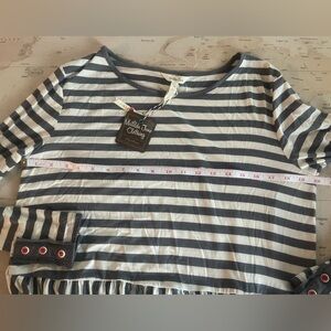 Gray and white striped long sleeve with cute little pink contrasting buttons - decoration only- no flaws, new with tags.