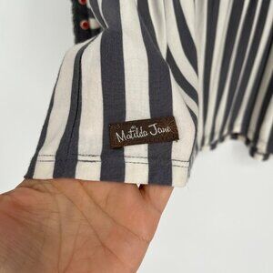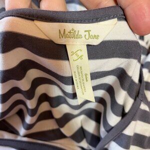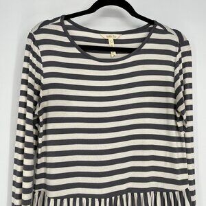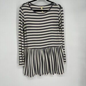 Matilda Jane Let's Connect Tee Gray Cream Striped Long Sleeve Peplum Top Size Sm