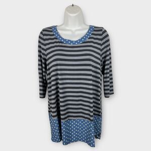 Matilda Jane Lets Get Lost Tunic XS Polka Dot Striped Roll Tab Scoop Neck Casual