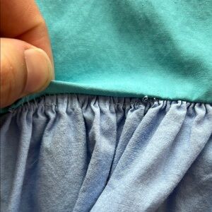 Fair condition—a spot where the hem is unraveled at the waist. It doesn’t create a hole. It just looks a bit off. One small pink stain and two other very light stains (photographed with the measuring tape). The stains are all quite light and not noticeable unless really looking closely.
