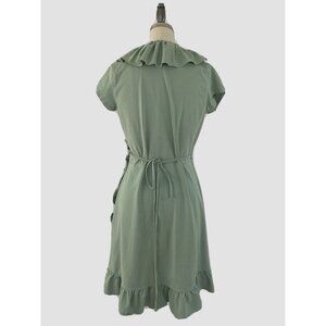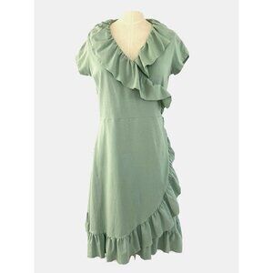 Matilda Jane Light as Air Wrap Dress Green Ruffle Trim Short Sleeve Size Small