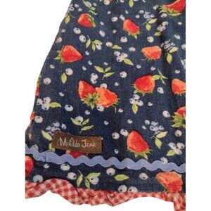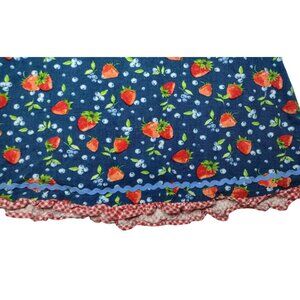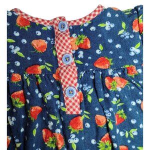 This is an adorable little linen blend dress with Strawberries & blueberries. This is a button back with Gingham trim & Gingham cap sleeves. Chest measures 26".