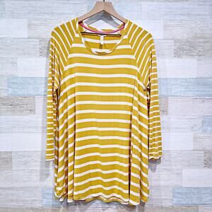 Matilda Jane Long Sleeve Jersey Knit Tunic Top Yellow White Stripe Womens Large