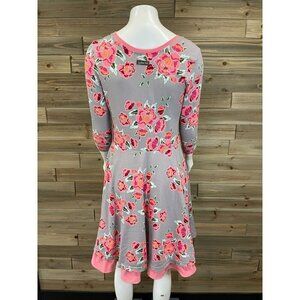 Matilda Jane Marzipan Gray Rose Dress Small Pink Floral A-Line 3/4 Sleeve Ruffle