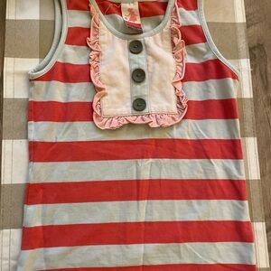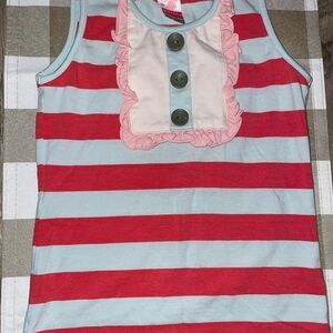 I cannot believe I’m letting this set go!!!! However my girl has exceeded her time wearing this!! I feel like both pieces fit at size 4 and size 6! At 4 the ruffles were longer and at size 6 they were the little shorter length and it looks perfect either way!!! I guess I am listing it fair because I’m nervous there could be a dingy bum that I Couldn’t see when taking pictures! This fabric/color is a little harder to find spots!! But the set looks in good condition, just wash wear and lots of love!!!! A new little needs this adorable set!