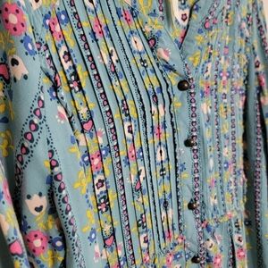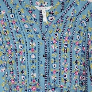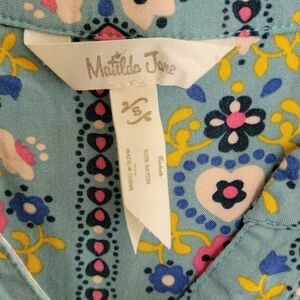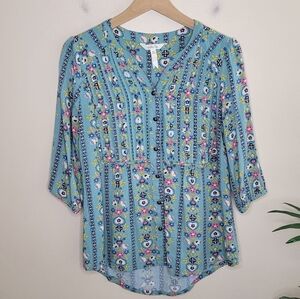 Matilda Jane | Muse Turquoise Floral 3/4 Sleeve Button Front Top Size Small