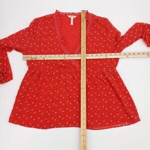 Matilda Jane Must Be Love Top Coral Printed Swiss Dot Crossover Front V-Neck Balloon Sleeves Long Sleeve Lightweight Breathable Women's