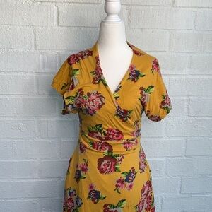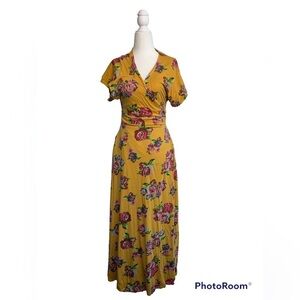 Matilda Jane Mustard Yellow Floral Wrap Alana Maxi Dress sz S