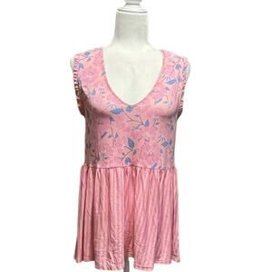 Matilda Jane NWT Size Medium Pink Floral and Solid Sleeveless Blousen Top