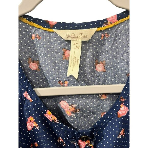 Matilda Jane Navy Polka Dot & Floral Long Sleeve Blouse women’s Size L