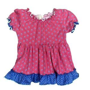 Matilda Jane New Jennifer Peasant Red & Blue Apple Top Size 6