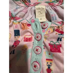 Matilda Jane nutcracker season pajama top size 8 gently used has a bit pealing fuzz on arms threw out but hardly noticeable