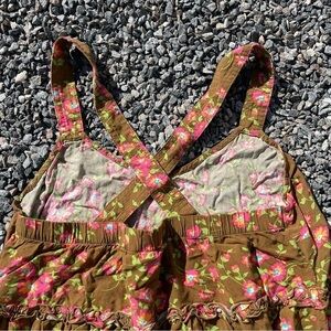 🥒 Matilda Jane On a Whim Floral Cross Back Brown Pink Sleeveless Tank Shirt S