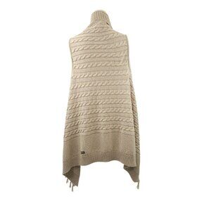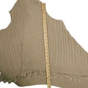 Matilda Jane Open Front Cardigan Cape Womens S Cable Knit Beige Tan Fringe Boho