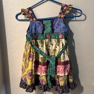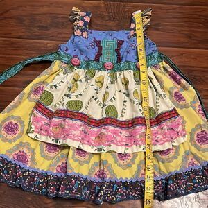 Matilda Jane Paint By Numbers Multi Print Apron Hot Air Ballon Floral Design Dress. Size 4, ties on the back, adorable piece, can be worn for multiple occasions.