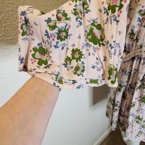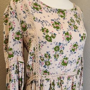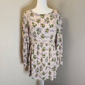 Matilda Jane Pink Floral Boho Pleated Tunic Sz L NEW Reg $64