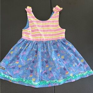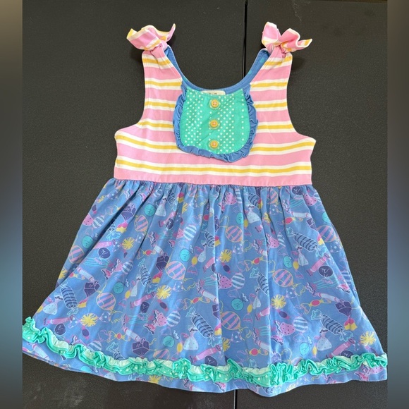 This charming sundress by Matilda Jane features a playful ruffled and tiered design in pink and white, perfect for casual outings. The sleeveless style with a scoop neckline adds a touch of elegance, while the vibrant colors and whimsical patterns make it a delightful addition to any wardrobe.