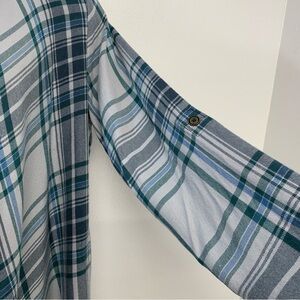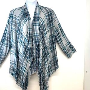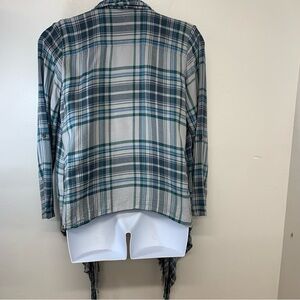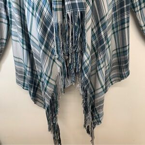 Matilda Jane Plaid Open Flannel Kimono Top Medium Fringe Drape Long Roll Tab