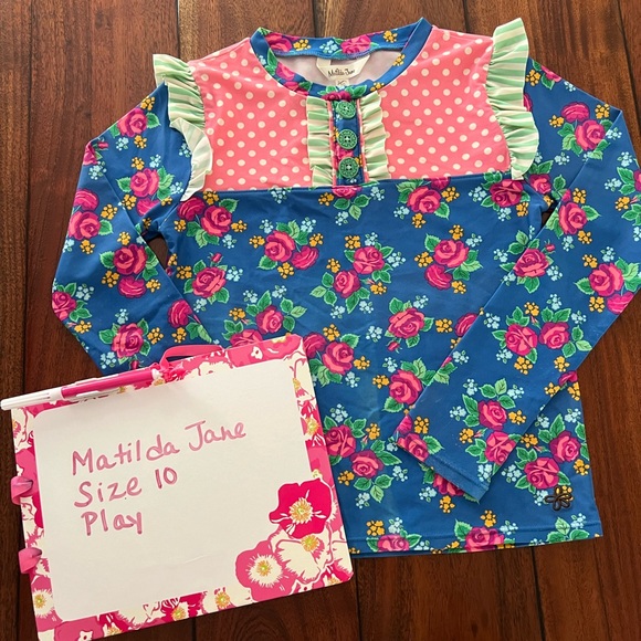 Low Tide Rash Guard from the Brilliant Daydream collection. Size 10 in play condition for stains — see pictures.