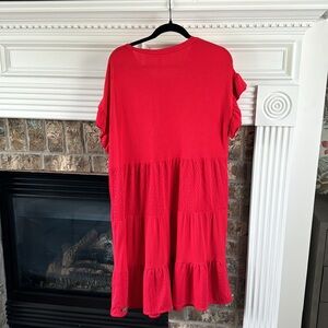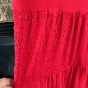 Super comfy red dress from Matilda Jane with eyelet trim details. Perfect for game day! Material is stretchy and jersey. Excellent condition from a non-smoking home.