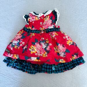 Matilda Jane Red + Green Sugar Plum Holiday Floral Ruffle Dress - 3 to 6 Months